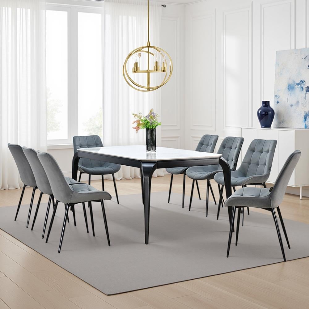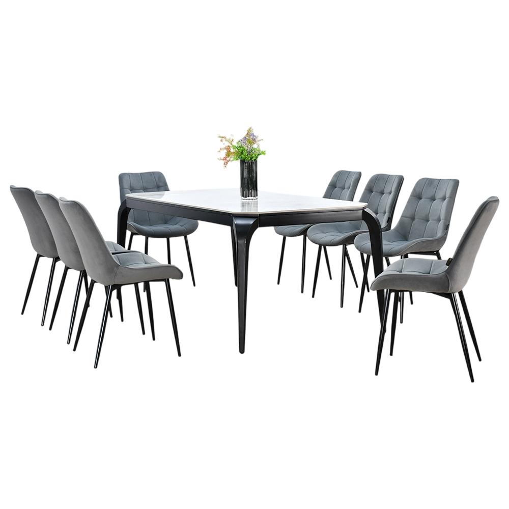 طاولة طعام مودرن رخام 8 كراسي بأرجل معدنية